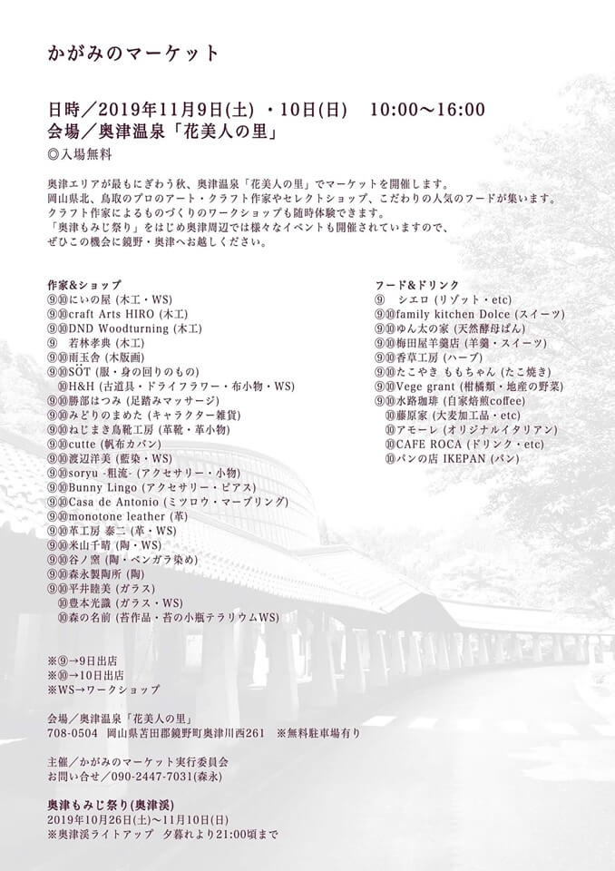 鏡野町奥津温泉にて開催のかがみのマーケットに参加します!
